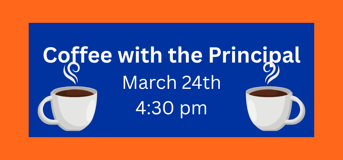 Join us for Coffee with the Principal tomorrow, Tuesday, March 24, at 4:30 PM at Cowherd Middle School. This is a great opportunity for parents to learn about university preparedness and social-emotional learning (SEL) for our students. We will also discuss how the principal and parents can collaborate more effectively to support student growth. We hope to see you there!